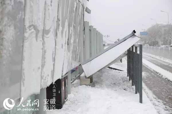 望江路沿线的全部公交站台均已拉起警戒线,每个公交站台两端均有公交公司派出的人员看守,劝阻乘客进入。现场还有合肥市政工作人员乘坐升降车辆,清除尚未坍塌雨棚上的积雪。