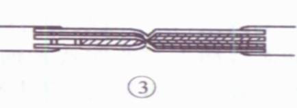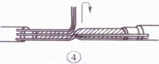 6.接着把处于紧挨平卧前邻近的2根芯线折成90° ,并按步骤⑤ 方法加工。